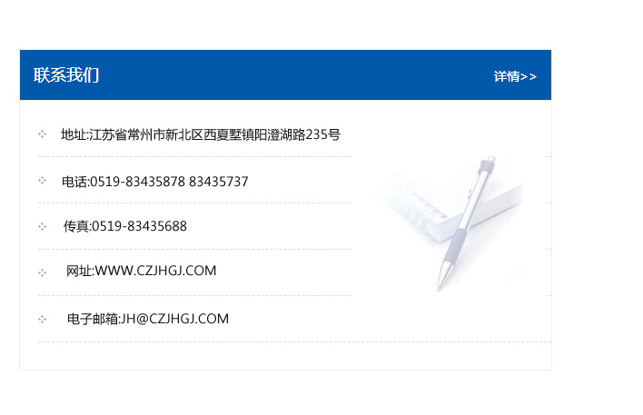 傳真:0519-83435688    郵編:213135    網址:WWW.czjhgj_com.bobohudong.com    電子郵箱:JH@czjhgj_com.bobohudong.com